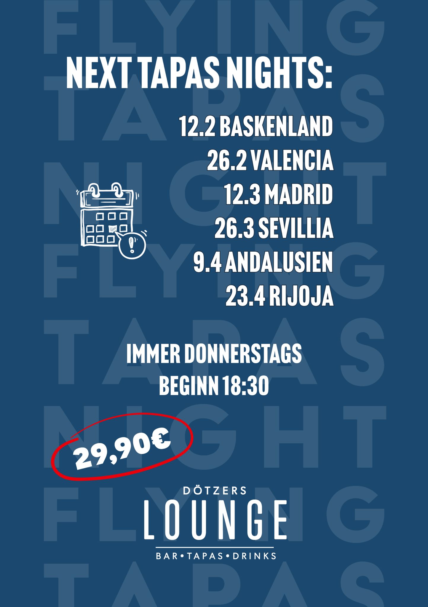 Am 28. Februar 2026 ab 18:30 Uhr erwartet Sie ein besonderer Gourmetabend mit einem Flying-Tapas-Menü im Gourmetstyle.
