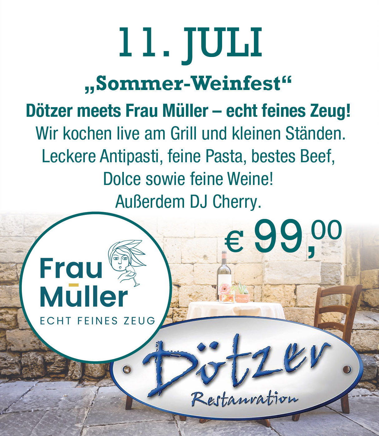 11. Juli 2026 – Sommerweinfest „Dötzer meets Frau Müller“